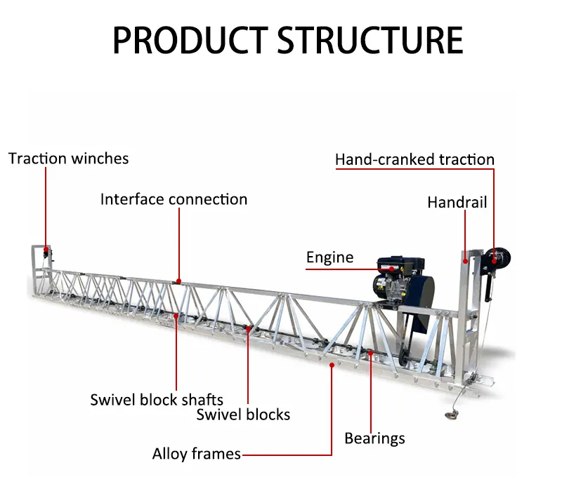 18m 콘크리트 바닥 알루미늄 진동 트러스 스크 리드 머신은 고효율, 정밀성 및 내구성과 같은 많은 장점을 통합하는 고급 건축 장비입니다. 이 발사는 대형 콘크리트 바닥 슬래브 구조의 기술적 진보와 효율성 향상을 크게 촉진 할 것입니다.