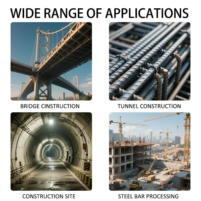 4.5kW Rebar Thread Rolling Machine은 현대 구조에서 강철 막대의 기계적 연결을위한 핵심 장비입니다. 다양한 철근 콘크리트 구조 프로젝트에서 널리 사용됩니다. 고층 건물, 교량 및 터널과 같은 대규모 프로젝트에서는 빔 및 컬럼의 주요 강철 막대의 최종 스레딩 가공을 효율적으로 완료 할 수 있으며 전단 벽 강철 막대를 효율적으로 완료하여 고강도 기계적 연결을 달성 할 수 있습니다. 조립식 구성 요소 공장에서는 조립식 건물에 필요한 슬리브 연결 강철 막대를 배치 할 수 있습니다. 지하철 파이프 갤러리 및 원자력 프로젝트와 같은 스틸 바 연결 품질에 대한 엄격한 요구 사항이있는 특별 프로젝트에도 적용됩니다.
