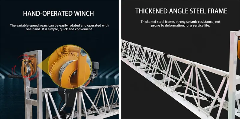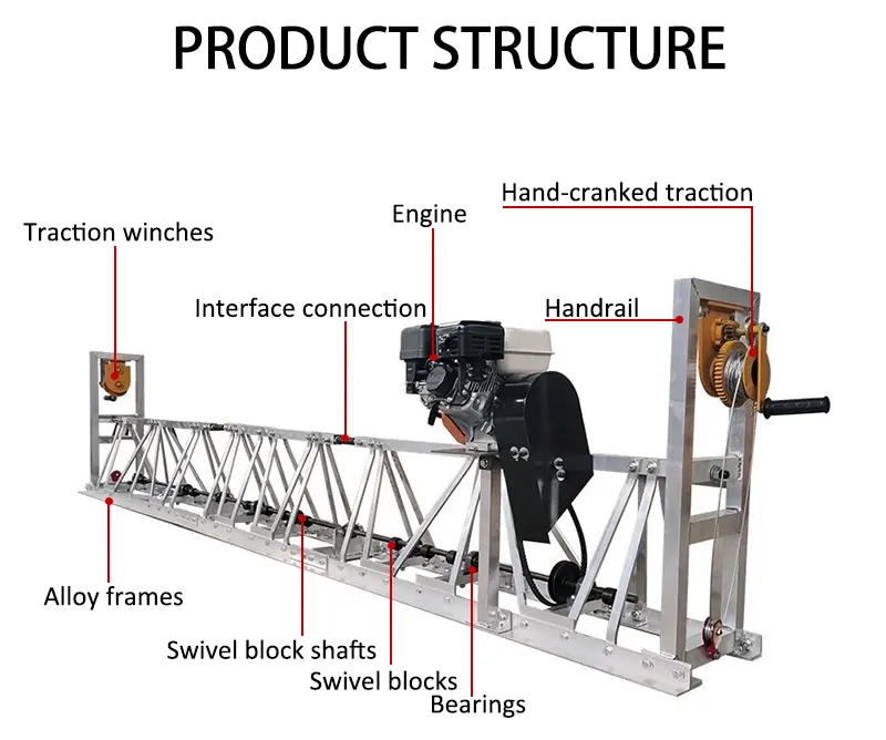 Shunhang Industry 4m 콘크리트 바닥 알루미늄 진동 트러스 스크린 기계는 빠른 속도와 고효율로 스크 리드 기계를 건설하는 동안 재료 공급 및 보조 작업이 제 시간에 유지되는 한, 대 수도원은 고속으로 지속적으로 작동 할 수 있으며 높은 생산성은 시간당 200 평방 미터에 도달 할 수 있습니다. 4M 알루미늄 진동 트러스 스크린 머신 평균 효율은 수동으로 작동하는 작업 표면의 경우 3 배 이상 증가합니다.