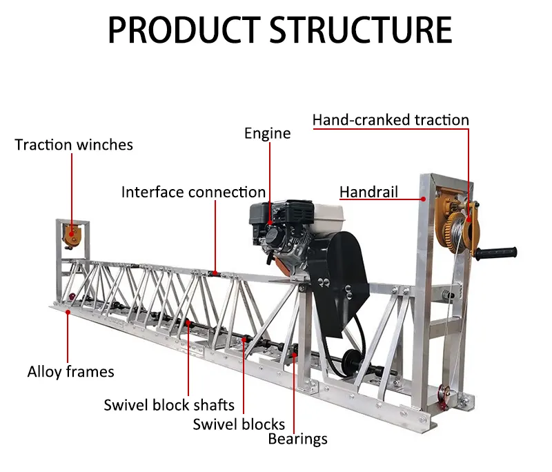 안정적인 작업 기계 6m 콘크리트 바닥 알루미늄 진동 트러스 스크 리드 기계는 진동, 압축, 슬러리 추출, 스크래핑 또는 아치를 한 번에 완성 할 수 있으며 다양한 스팬의 구조의 무결성을 효과적으로 실현할 수 있습니다.